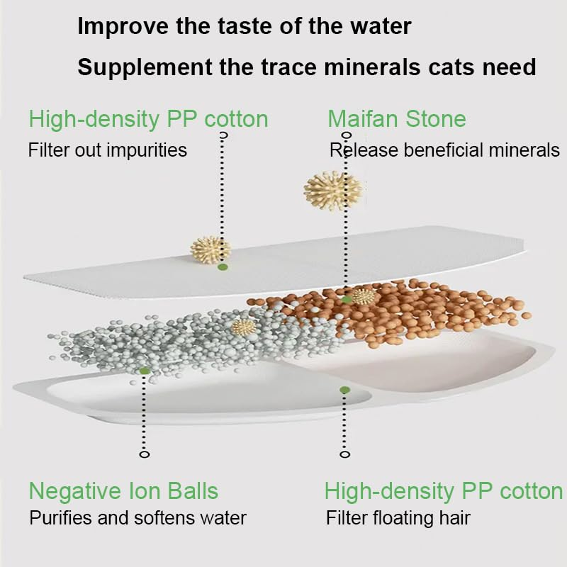 CIRCULEREND FILTERSYSTEEM VOOR VERS WATER: De automatische waterdispenser is uitgerust met een circulerend filtersysteem dat een bronachtige waterstroom nabootst, waardoor het zuurstofgehalte in het water toeneemt en zwevende haren en stof worden gefilterd. Dit zorgt ervoor dat je huisdier altijd toegang heeft tot schoon, vers water, vermindert het risico op door water overgebrachte ziekten en stimuleert een betere hydratatie.