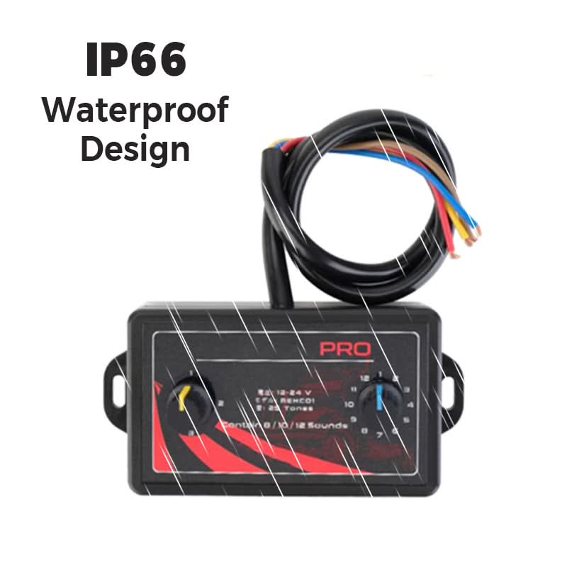 NAUWKEURIGE AFSTEMMING MET DUBBELE KNOPPEN - Uitgerust met twee onafhankelijke knoppen, één om de geluidssnelheid aan te passen en de andere voor het ritme, waardoor u de claxongeluiden voor elke rijsituatie nauwkeurig kunt afstemmen.