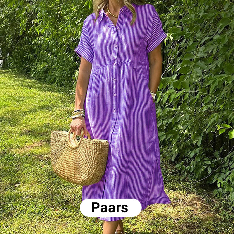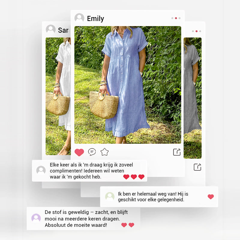๐ (Maat: S-4XL) ๐๏ธNieuwe exclusieve zomerkleding ๐ Gestreepte revers-overhemdjurk met knopen | Met functionele zakken